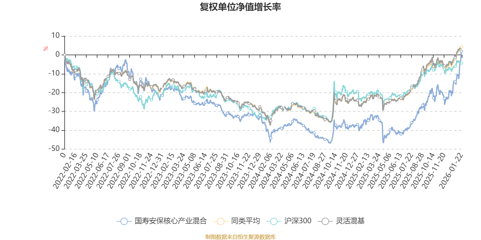 截至1月22日,国寿安保核心产业混合近三个月复权单位净值增长率为30.36%,位于同类可比基金39/1286;近半年复权单位净值增长率为59.17%,位于同类可比基金94/1286;近一年复权单位净值增长率为56.21%,位于同类可比基金252/1286;近三年复权单位净值增长率为24.71%,位于同类可比基金465/1286。