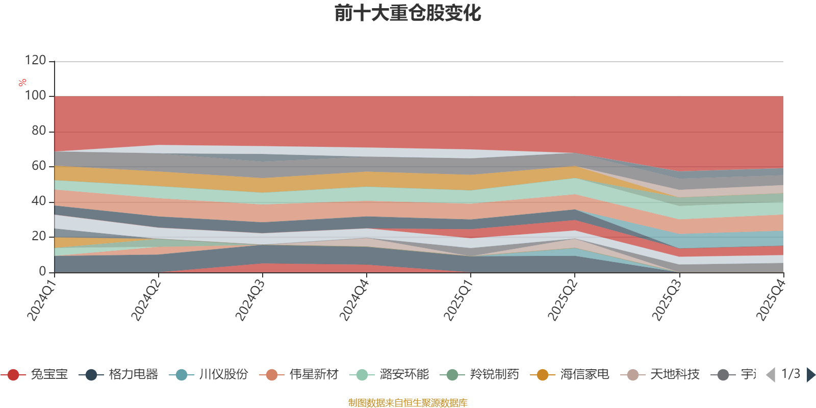 该基金持股集中度较高。截至2025年四季度末,基金十大重仓股分别是美的集团、海尔智家、渝农商行、景津装备、工商银行、宇通客车、云铝股份、紫金矿业、春风动力、宁德时代。