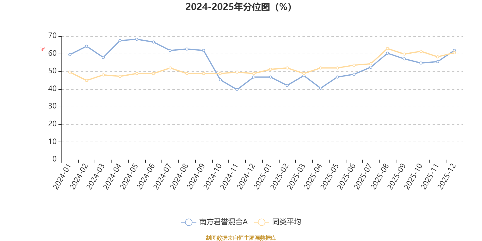 通过所选区间该基金净值增长率分位图,可以观察该基金与同类基金业绩比较情况。图为坐标原点到区间内某时点的净值增长率在同类基金中的分位数。