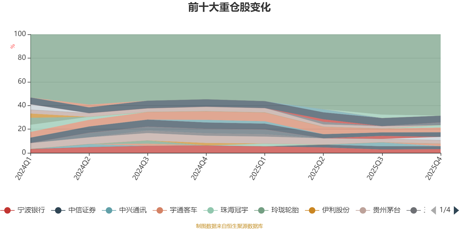截至2025年四季度末,基金十大重仓股分别是宁德时代、美的集团、海尔智家、宁波银行、贵州茅台、亚钾国际、中信证券、时代电气、渝农商行、宇通客车。