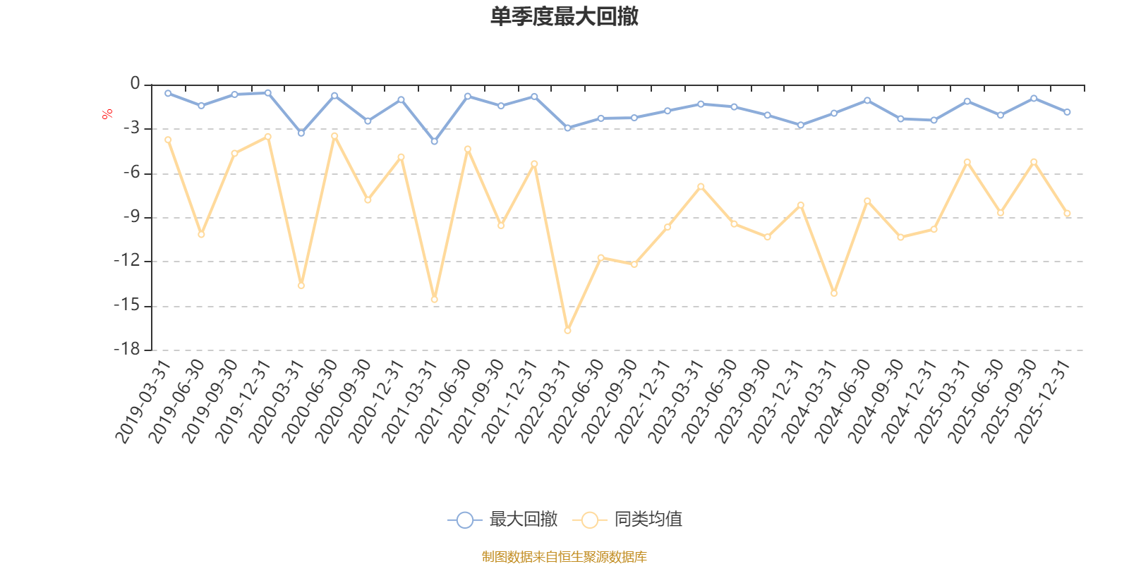 通过所选区间该基金净值增长率分位图,可以观察该基金与同类基金业绩比较情况。图为坐标原点到区间内某时点的净值增长率在同类基金中的分位数。
