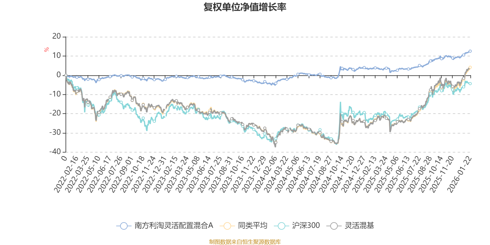 截至1月22日,南方利淘灵活配置混合A近三个月复权单位净值增长率为3.22%,位于同类可比基金966/1286;近半年复权单位净值增长率为7.08%,位于同类可比基金1008/1286;近一年复权单位净值增长率为8.92%,位于同类可比基金1110/1286;近三年复权单位净值增长率为13.50%,位于同类可比基金705/1286。