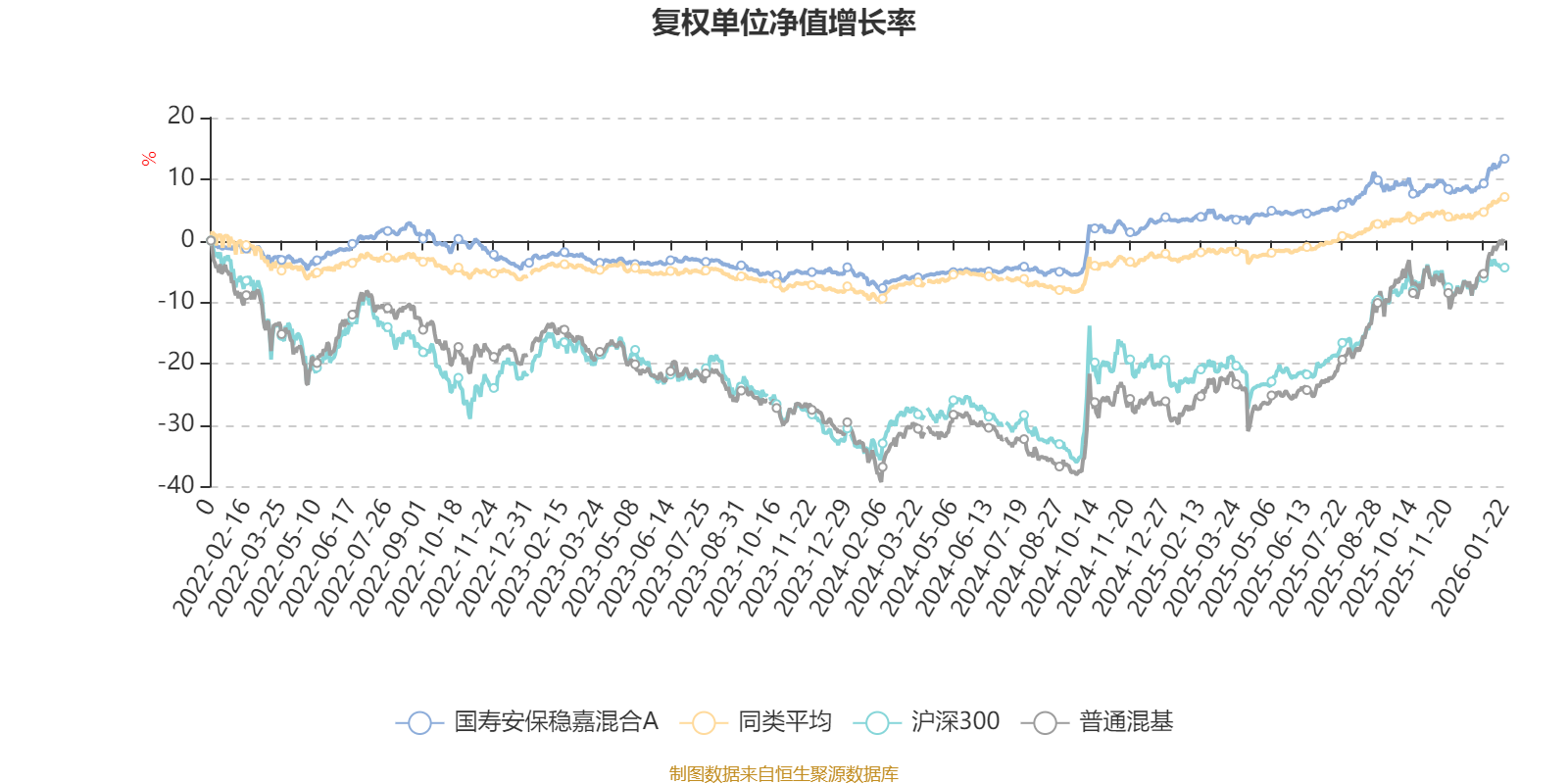 截至1月22日,国寿安保稳嘉混合A近三个月复权单位净值增长率为4.98%,位于同类可比基金76/629;近半年复权单位净值增长率为7.01%,位于同类可比基金152/629;近一年复权单位净值增长率为9.55%,位于同类可比基金229/626;近三年复权单位净值增长率为16.38%,位于同类可比基金149/564。