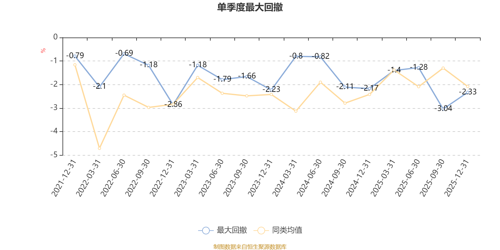 截至1月22日,基金近三年最大回撤为4.38%,同类可比基金排名147/527。单季度最大回撤出现在2025年三季度,为3.04%。
