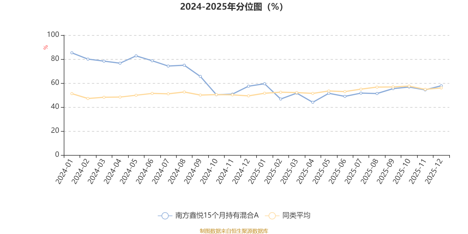 通过所选区间该基金净值增长率分位图,可以观察该基金与同类基金业绩比较情况。图为坐标原点到区间内某时点的净值增长率在同类基金中的分位数。