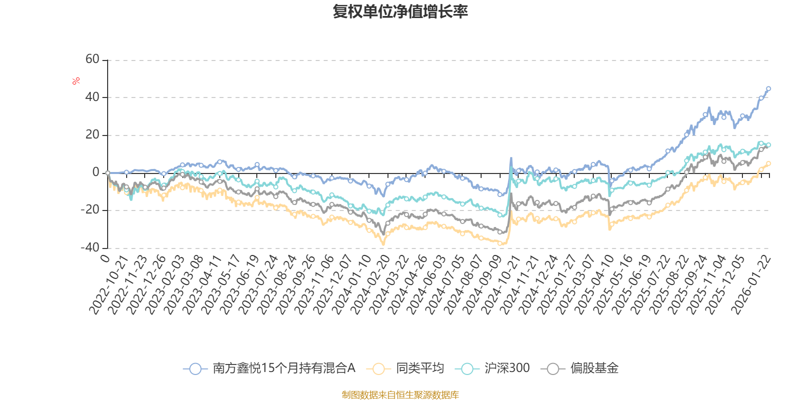 截至1月22日,南方鑫悦15个月持有混合A近三个月复权单位净值增长率为12.92%,位于同类可比基金169/621;近半年复权单位净值增长率为29.67%,位于同类可比基金223/621;近一年复权单位净值增长率为44.28%,位于同类可比基金253/613;近三年复权单位净值增长率为40.00%,位于同类可比基金102/535。