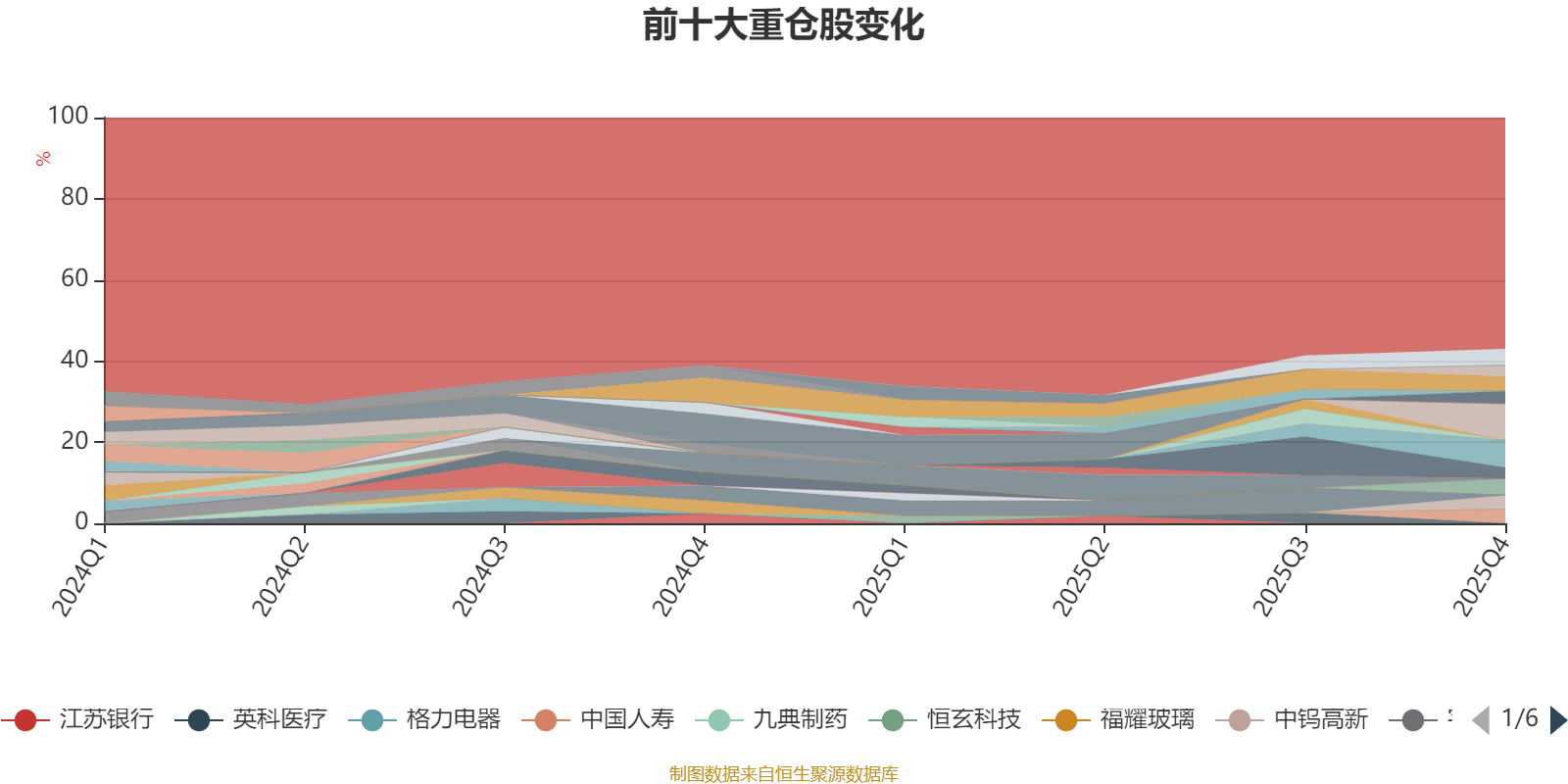 截至2025年四季度末,基金十大重仓股分别是中际旭创、洛阳钼业、中国平安、阳光电源、宁德时代、中国人寿、中钨高新、华友钴业、宝丰能源、新易盛。