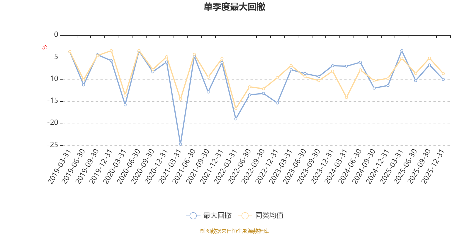 截至1月22日,基金近三年最大回撤为25.18%,同类可比基金排名381/1264。单季度最大回撤出现在2021年一季度,为24.79%。