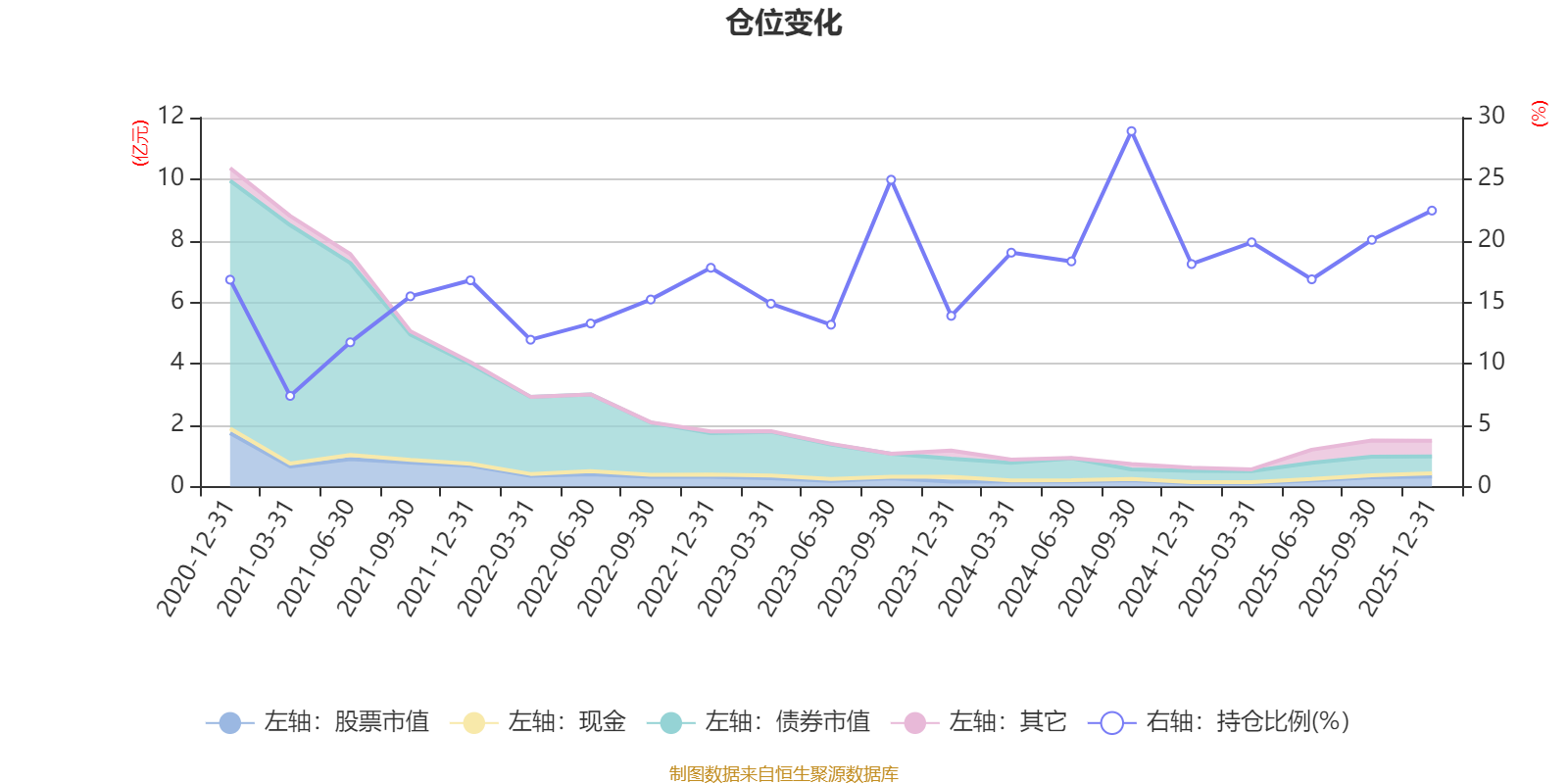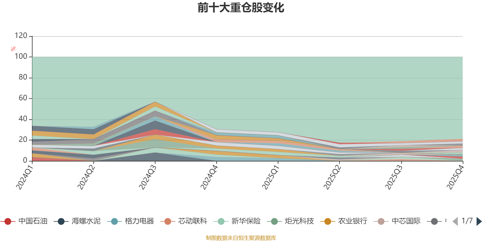 截至2025年四季度末,基金十大重仓股分别是江海股份、亿纬锂能、长江电力、星源卓镁、炬光科技、冰川网络、宏昌科技、铜冠铜箔、立讯精密、拓普集团。