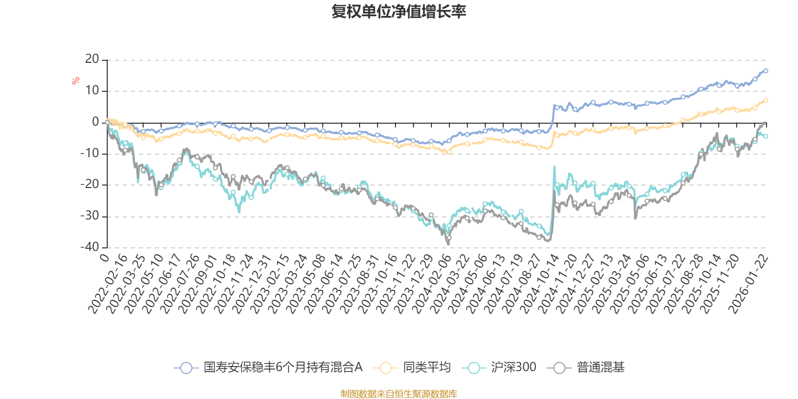 截至1月22日,国寿安保稳丰6个月持有混合A近三个月复权单位净值增长率为3.97%,位于同类可比基金122/629;近半年复权单位净值增长率为7.67%,位于同类可比基金124/629;近一年复权单位净值增长率为10.11%,位于同类可比基金210/626;近三年复权单位净值增长率为18.38%,位于同类可比基金109/564。