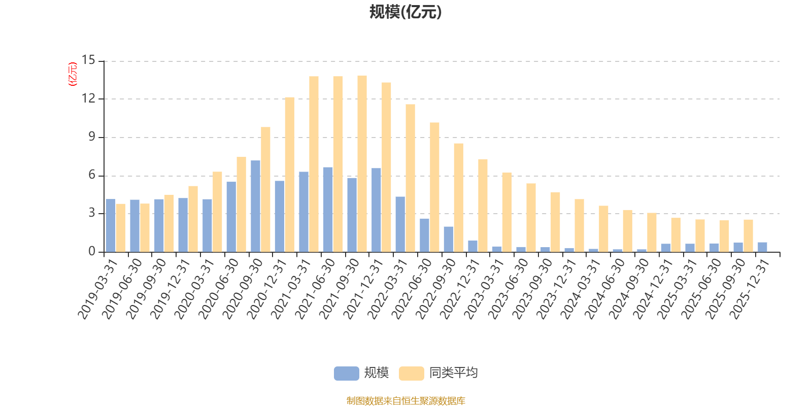 据定期报告数据统计,近三年平均股票仓位为14.07%,同类平均为19.2%。2022年末基金达到25.9%的最高仓位,2025年一季度末最低,为5.1%。