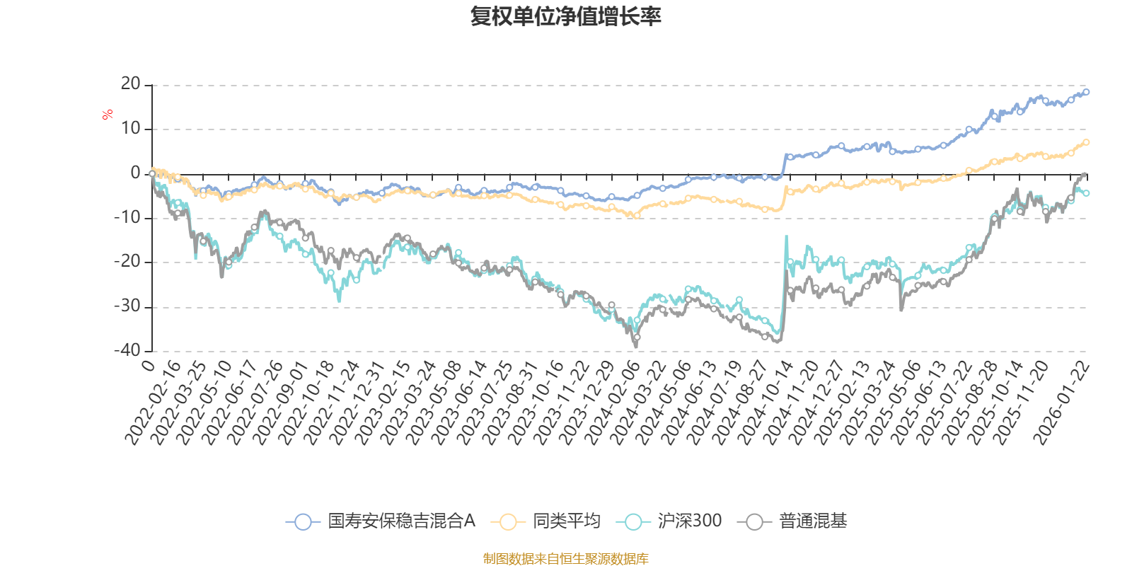 截至1月22日,国寿安保稳吉混合A近三个月复权单位净值增长率为3.20%,位于同类可比基金177/629;近半年复权单位净值增长率为7.64%,位于同类可比基金127/629;近一年复权单位净值增长率为12.36%,位于同类可比基金136/626;近三年复权单位净值增长率为21.39%,位于同类可比基金71/564。