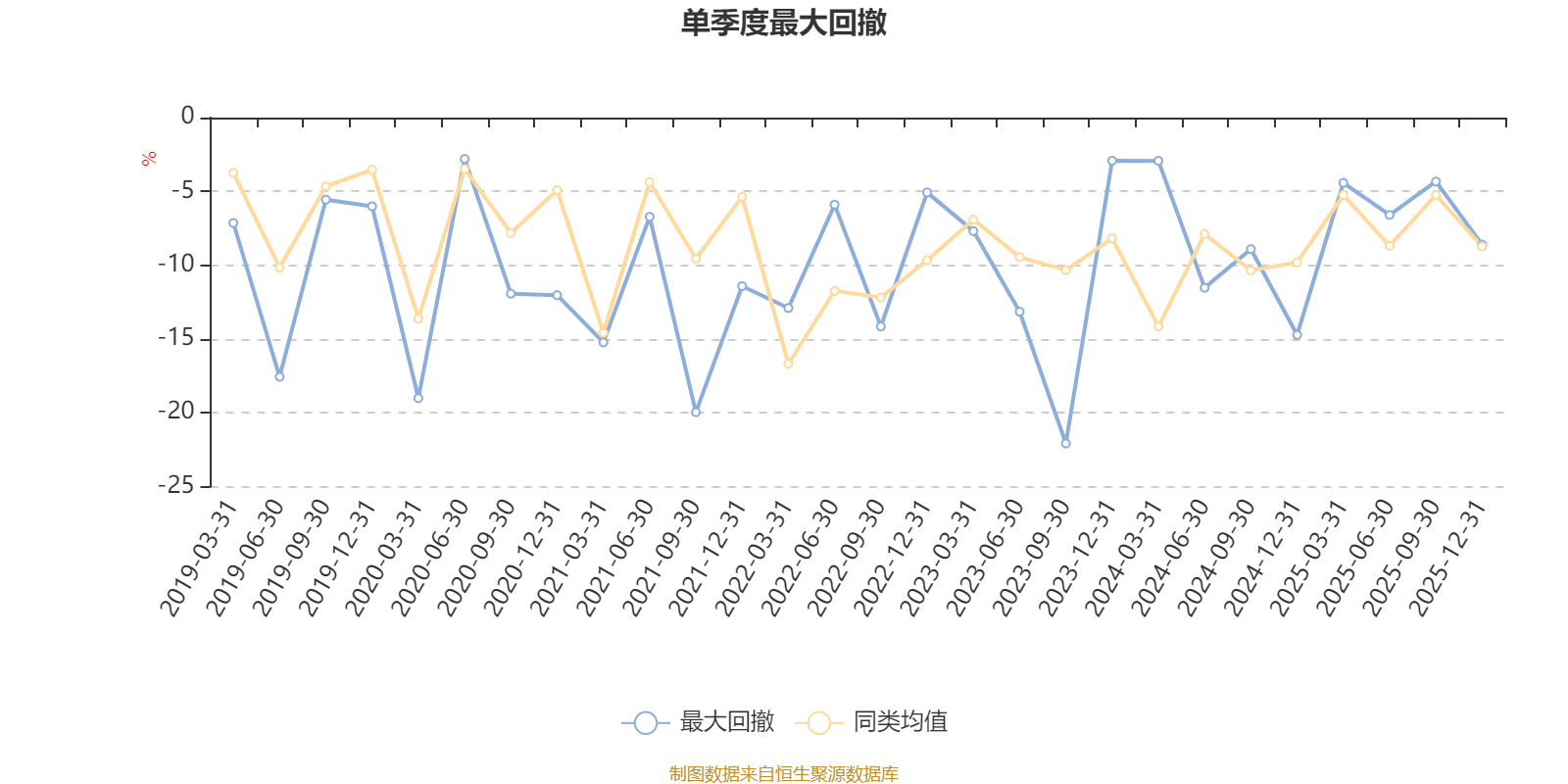通过所选区间该基金净值增长率分位图,可以观察该基金与同类基金业绩比较情况。图为坐标原点到区间内某时点的净值增长率在同类基金中的分位数。