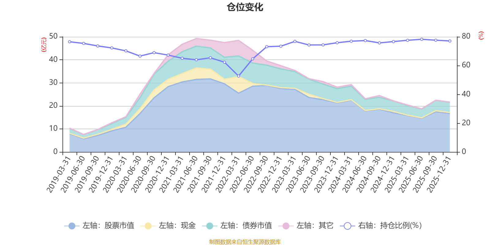 据定期报告数据统计,近三年平均股票仓位为76.53%,同类平均为72.57%。2025年上半年末基金达到78.25%的最高仓位,2022年一季度末最低,为52.72%。