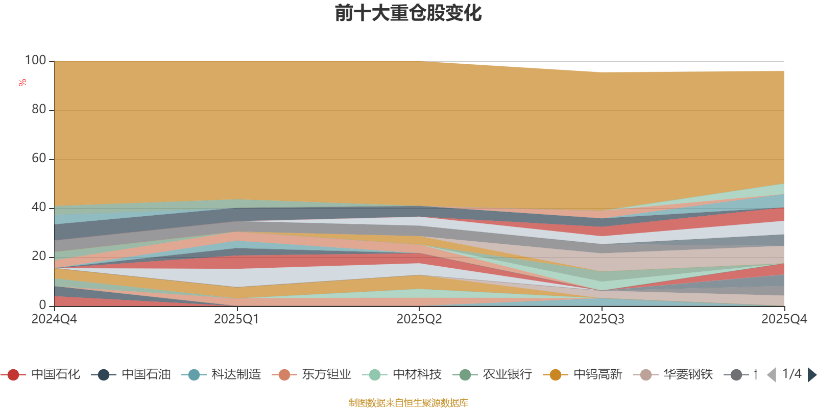 截至2025年四季度末,基金十大重仓股分别是洛阳钼业、华友钴业、天齐锂业、盐湖股份、牧原股份、隆基绿能、雅化集团、盛屯矿业、华菱钢铁、博源化工。