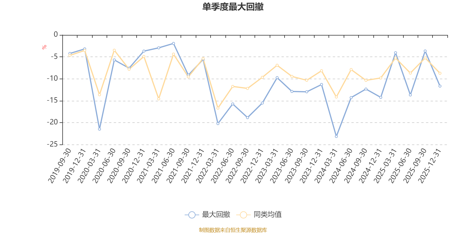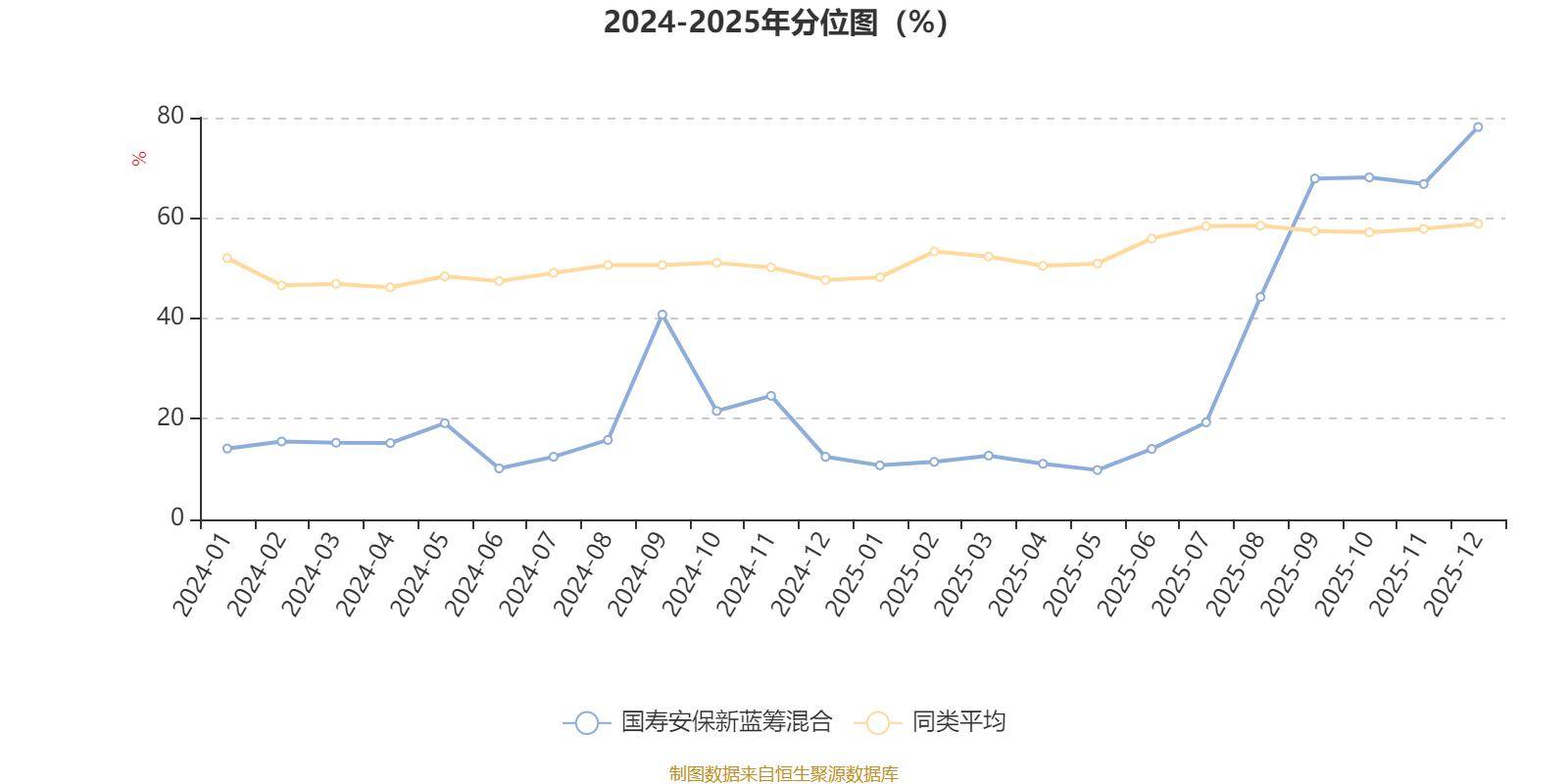 通过所选区间该基金净值增长率分位图,可以观察该基金与同类基金业绩比较情况。图为坐标原点到区间内某时点的净值增长率在同类基金中的分位数。