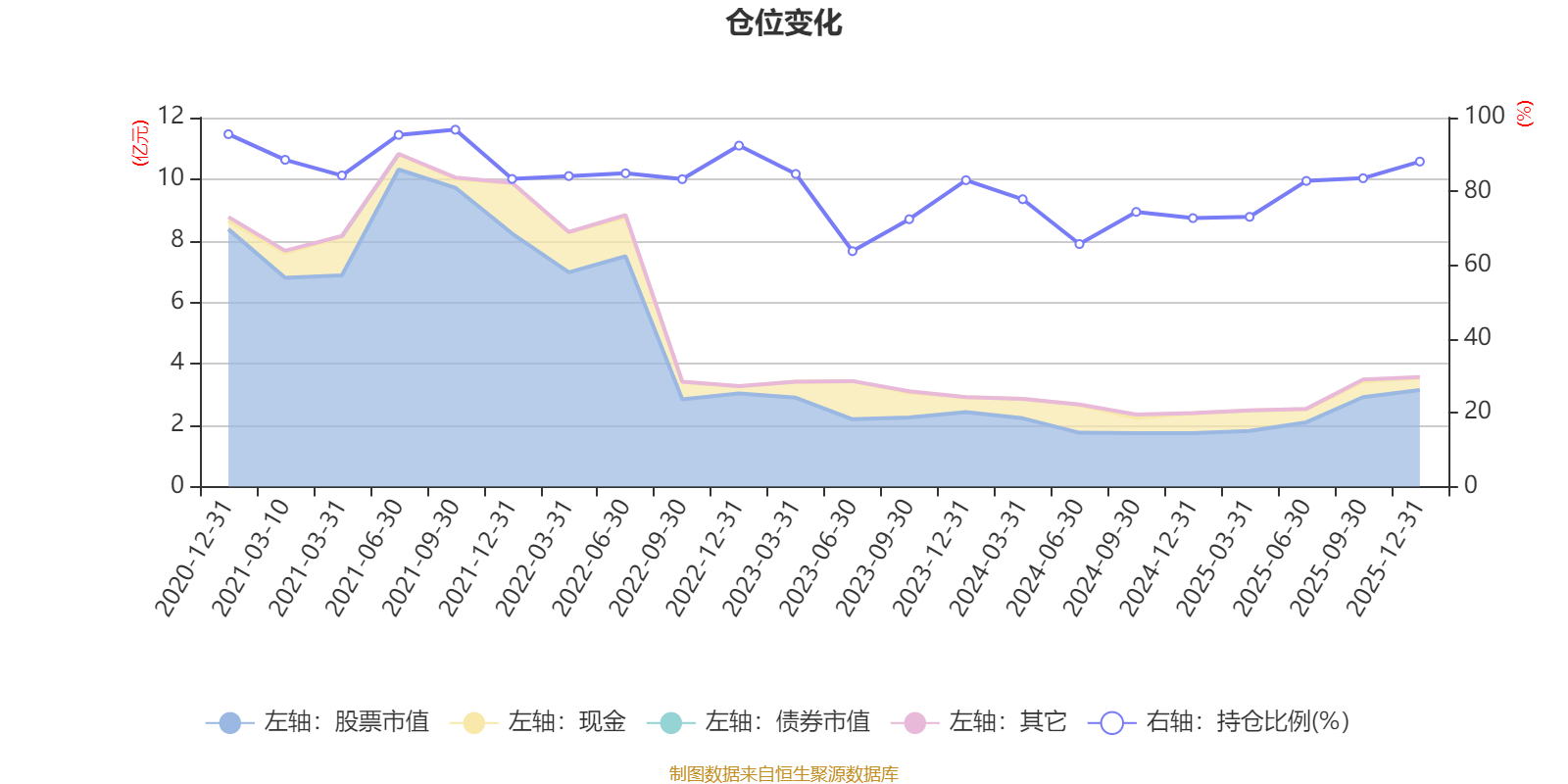 据定期报告数据统计,近三年平均股票仓位为76.87%,同类平均为85.83%。2021年三季度末基金达到96.72%的最高仓位,2023年上半年末最低,为63.8%。