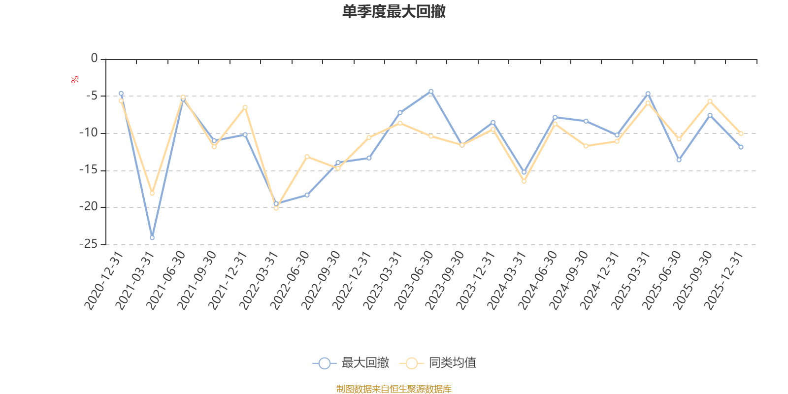 通过所选区间该基金净值增长率分位图,可以观察该基金与同类基金业绩比较情况。图为坐标原点到区间内某时点的净值增长率在同类基金中的分位数。