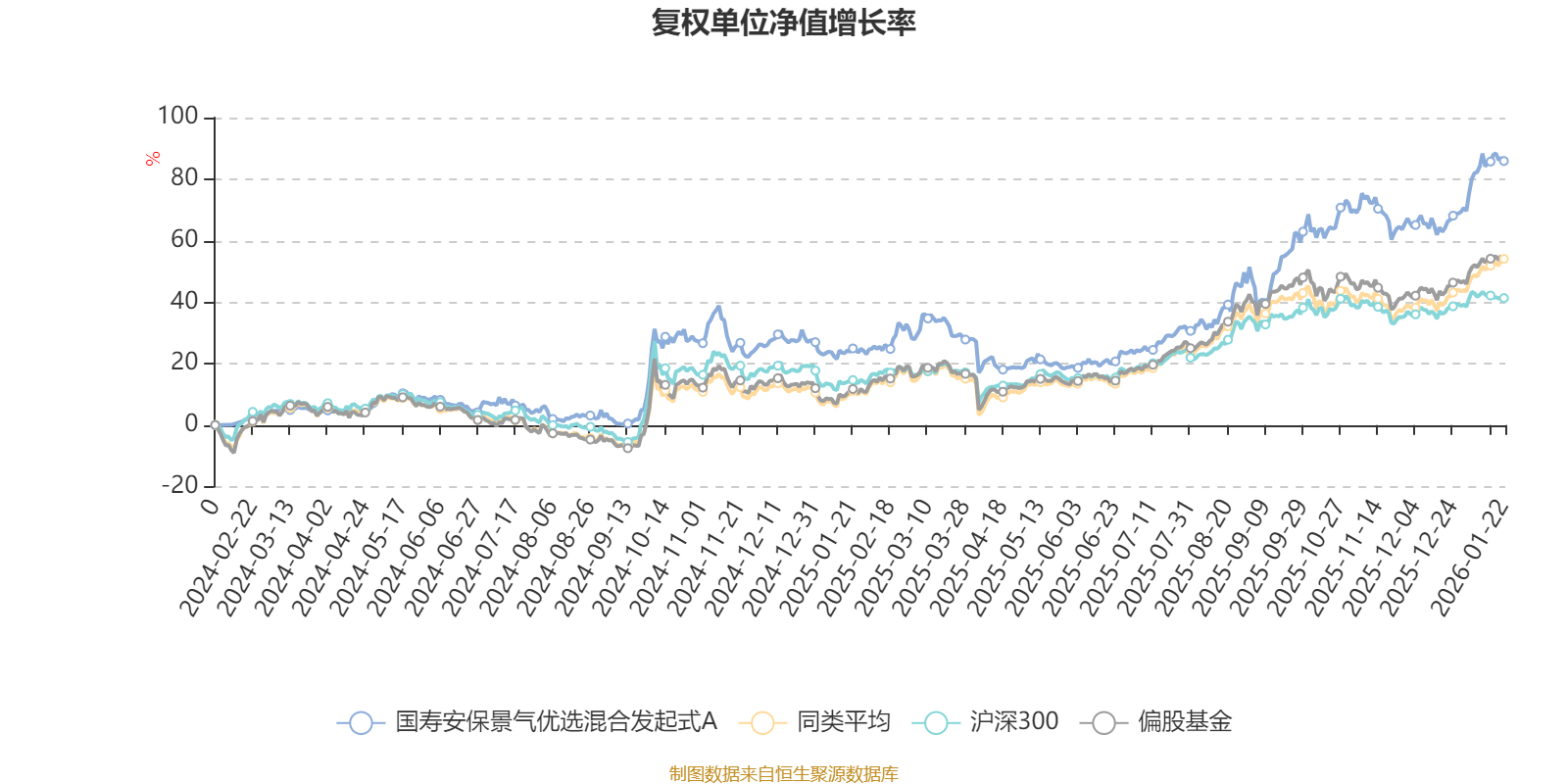 截至1月22日,国寿安保景气优选混合发起式A近三个月复权单位净值增长率为13.38%,位于同类可比基金208/689;近半年复权单位净值增长率为44.24%,位于同类可比基金98/689;近一年复权单位净值增长率为49.06%,位于同类可比基金212/673。