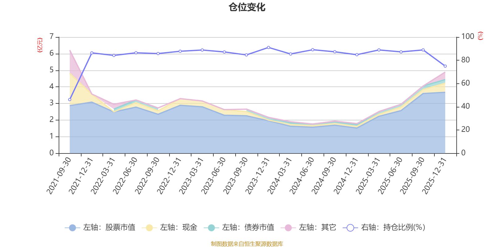 据定期报告数据统计,近三年平均股票仓位为86.54%,同类平均为85.83%。2023年末基金达到91.05%的最高仓位,2021年三季度末最低,为46.2%。