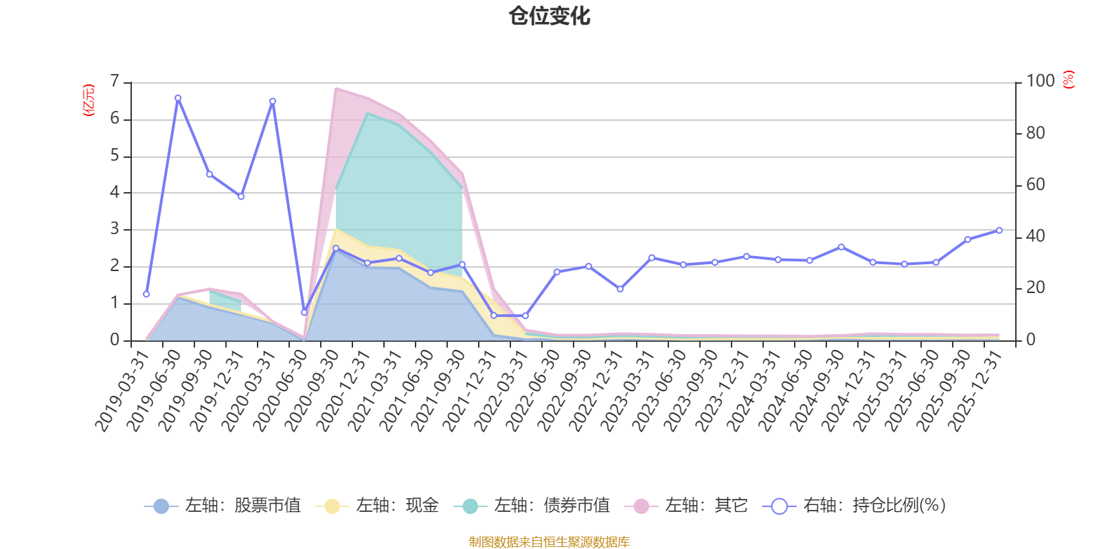 据定期报告数据统计,近三年平均股票仓位为32.96%,同类平均为72.57%。2019年上半年末基金达到93.95%的最高仓位,2022年一季度末最低,为9.67%。