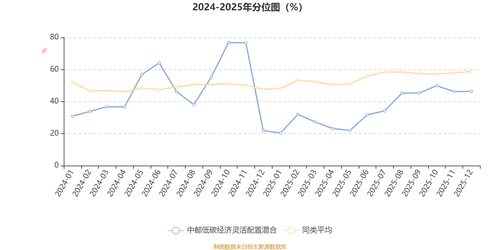 通过所选区间该基金净值增长率分位图,可以观察该基金与同类基金业绩比较情况。图为坐标原点到区间内某时点的净值增长率在同类基金中的分位数。