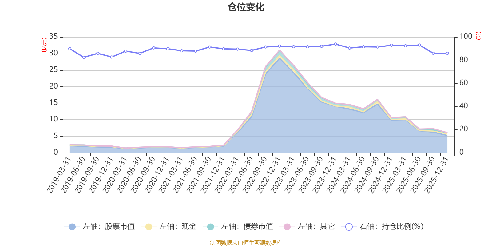 据定期报告数据统计,近三年平均股票仓位为90.97%,同类平均为86.12%。2023年末基金达到93.81%的最高仓位,2019年上半年末最低,为82.35%。