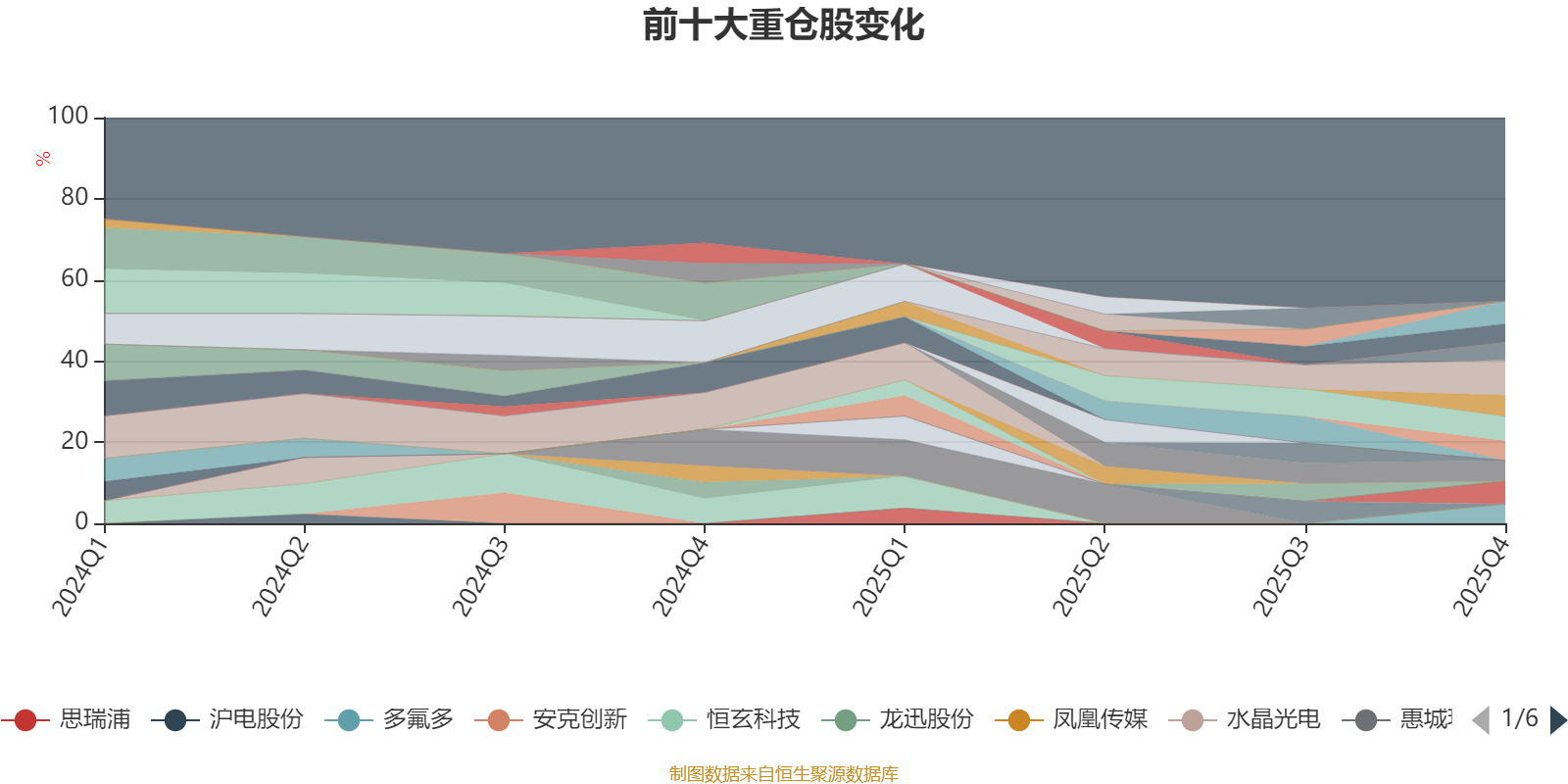 该基金持股集中度较高。截至2025年四季度末,基金十大重仓股分别是中际旭创、东山精密、英维克、天赐材料、工业富联、胜宏科技、华盛锂电、多氟多、源杰科技、中孚实业。