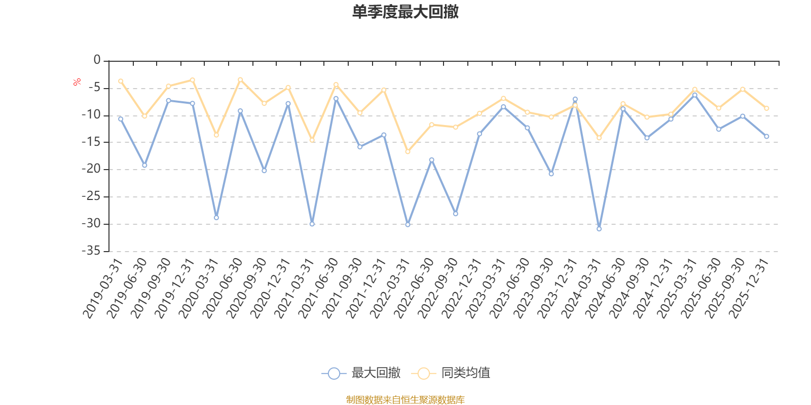 通过所选区间该基金净值增长率分位图,可以观察该基金与同类基金业绩比较情况。图为坐标原点到区间内某时点的净值增长率在同类基金中的分位数。
