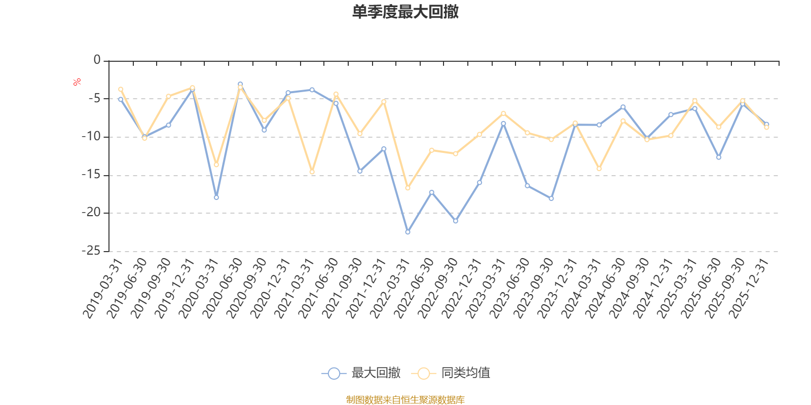 通过所选区间该基金净值增长率分位图,可以观察该基金与同类基金业绩比较情况。图为坐标原点到区间内某时点的净值增长率在同类基金中的分位数。