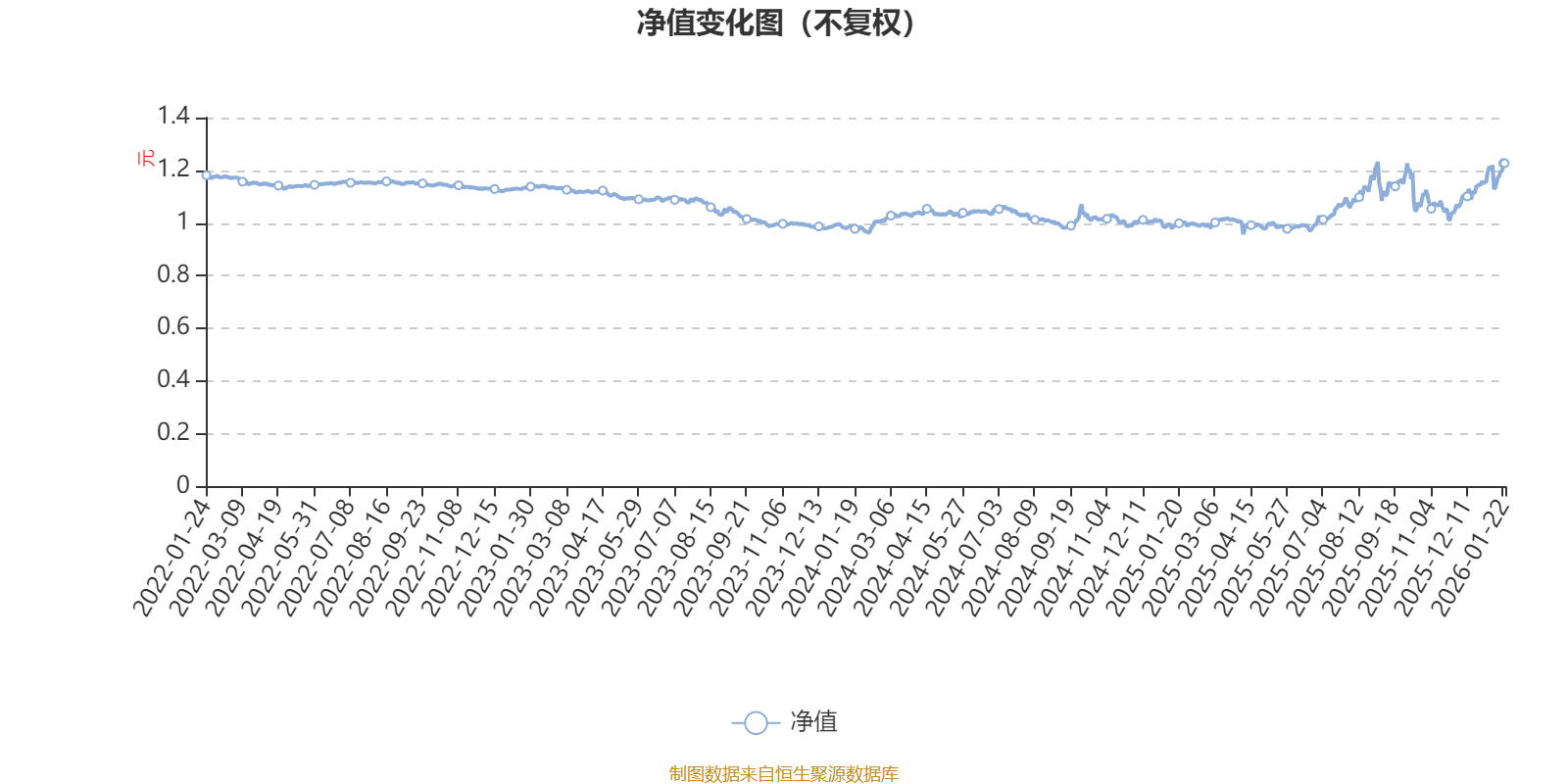 该基金属于股债平衡型基金。截至1月22日,单位净值为1.227元。基金经理是姚海明,目前管理的5只基金近一年均为正收益。其中,截至1月22日,新华红利回报混合近一年复权单位净值增长率最高,达52.02%;新华聚利债券A最低,为0.88%。