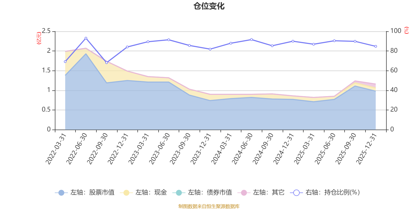 据定期报告数据统计,近三年平均股票仓位为87.95%,同类平均为84.04%。2022年上半年末基金达到93.09%的最高仓位,2022年三季度末最低,为68.16%。