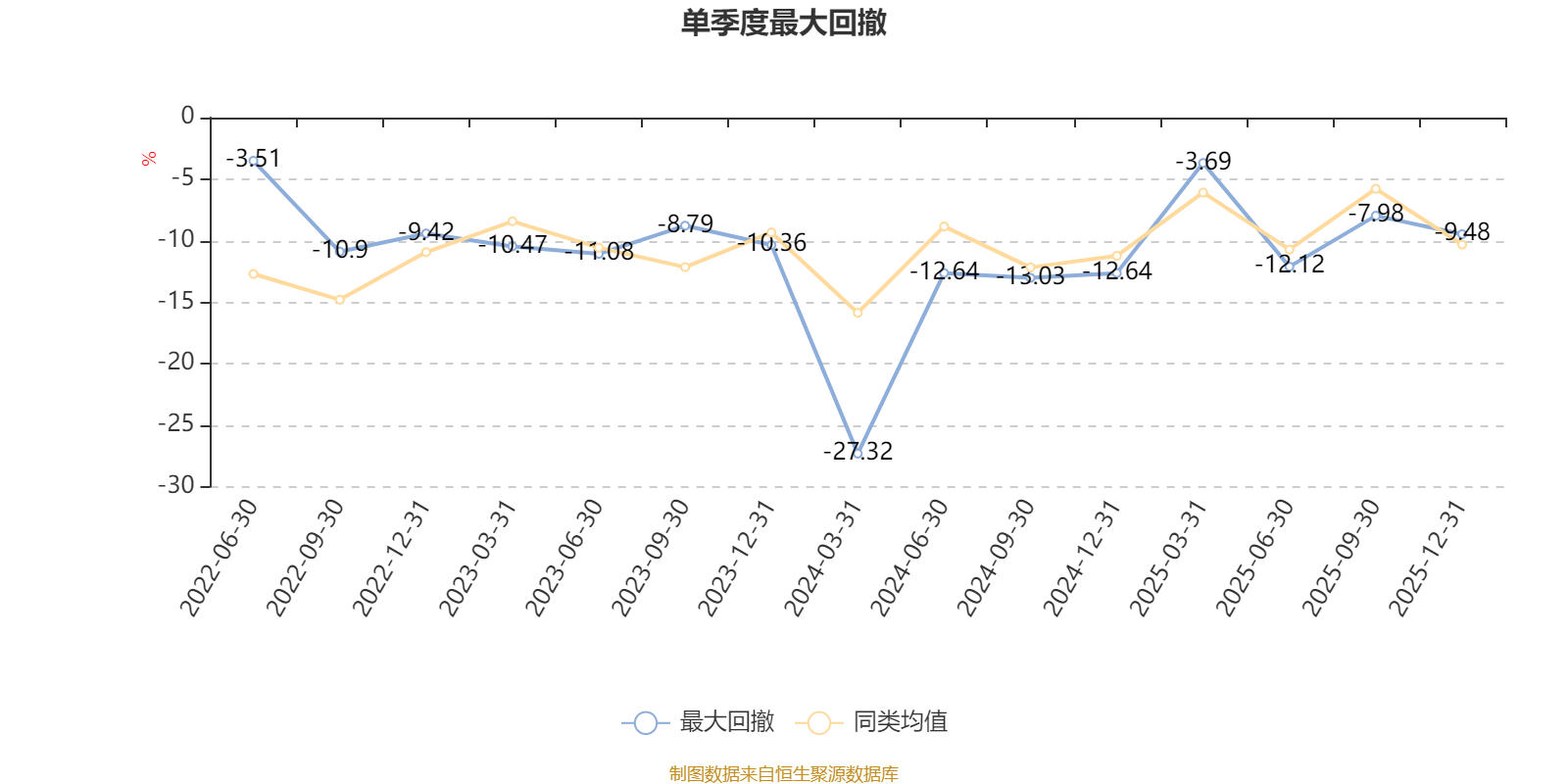 截至1月22日,基金近三年最大回撤为44.17%,同类可比基金排名303/378。单季度最大回撤出现在2024年一季度,为27.32%。