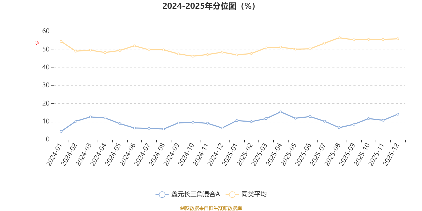 通过所选区间该基金净值增长率分位图,可以观察该基金与同类基金业绩比较情况。图为坐标原点到区间内某时点的净值增长率在同类基金中的分位数。