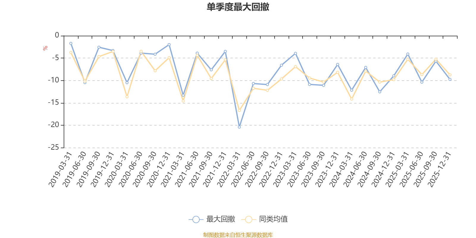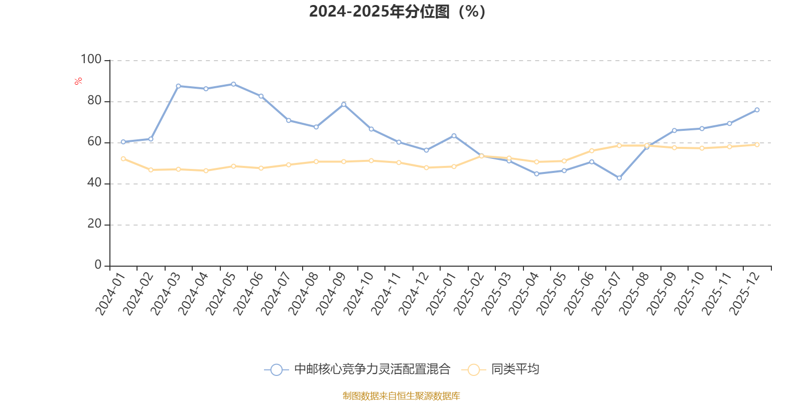 通过所选区间该基金净值增长率分位图,可以观察该基金与同类基金业绩比较情况。图为坐标原点到区间内某时点的净值增长率在同类基金中的分位数。