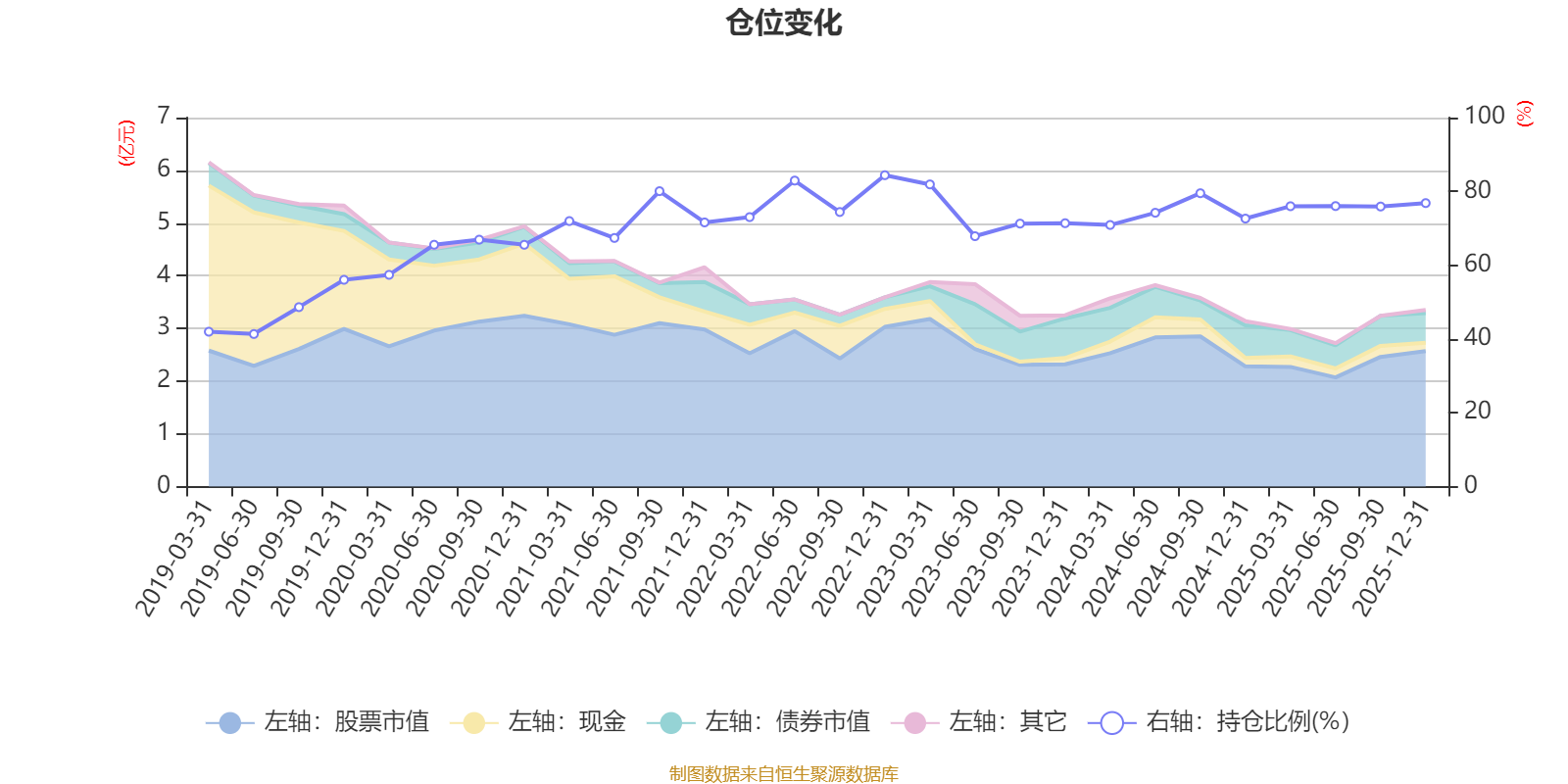 据定期报告数据统计,近三年平均股票仓位为74.53%,同类平均为72.57%。2022年末基金达到84.39%的最高仓位,2019年上半年末最低,为41.35%。