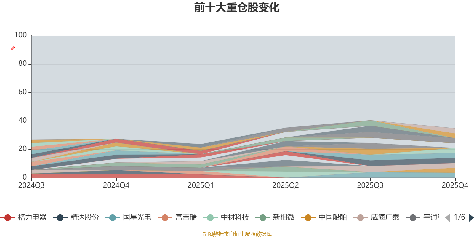 截至2025年四季度末,基金十大重仓股分别是阳光电源、海能实业、天秦装备、深天马A、TCL科技、国星光电、中国船舶、威海广泰、京东方A、宁德时代。