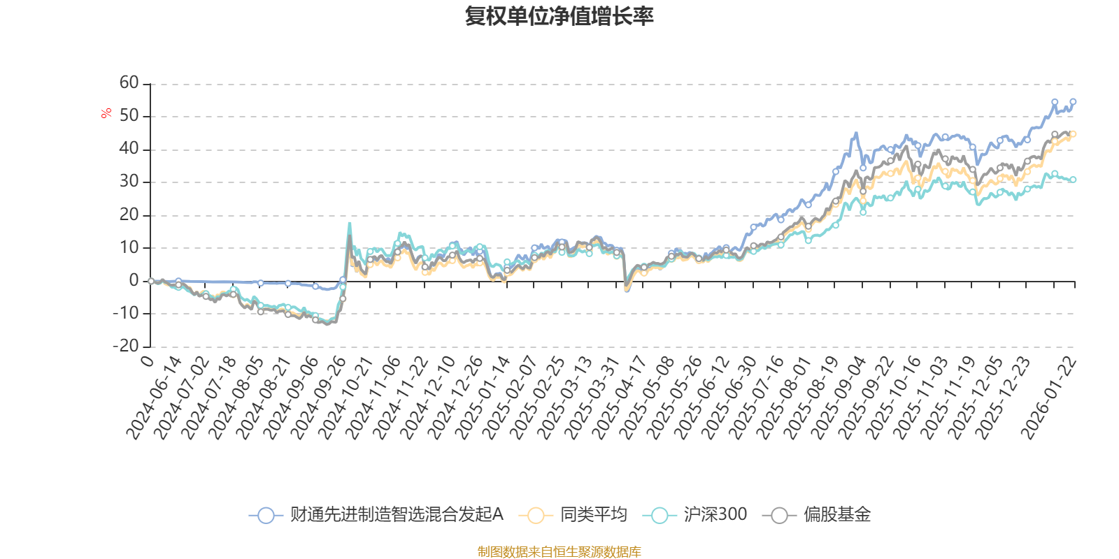 截至1月22日,财通先进制造智选混合发起A近三个月复权单位净值增长率为9.45%,位于同类可比基金346/689;近半年复权单位净值增长率为26.84%,位于同类可比基金288/689;近一年复权单位净值增长率为44.40%,位于同类可比基金263/673。