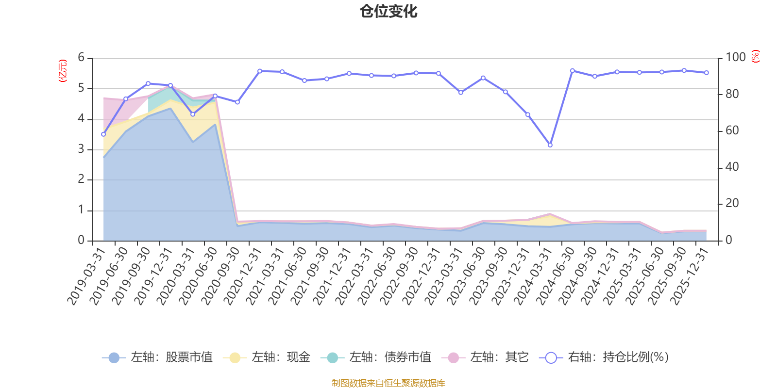 据定期报告数据统计,近三年平均股票仓位为84.95%,同类平均为72.57%。2025年三季度末基金达到93.29%的最高仓位,2024年一季度末最低,为52.43%。