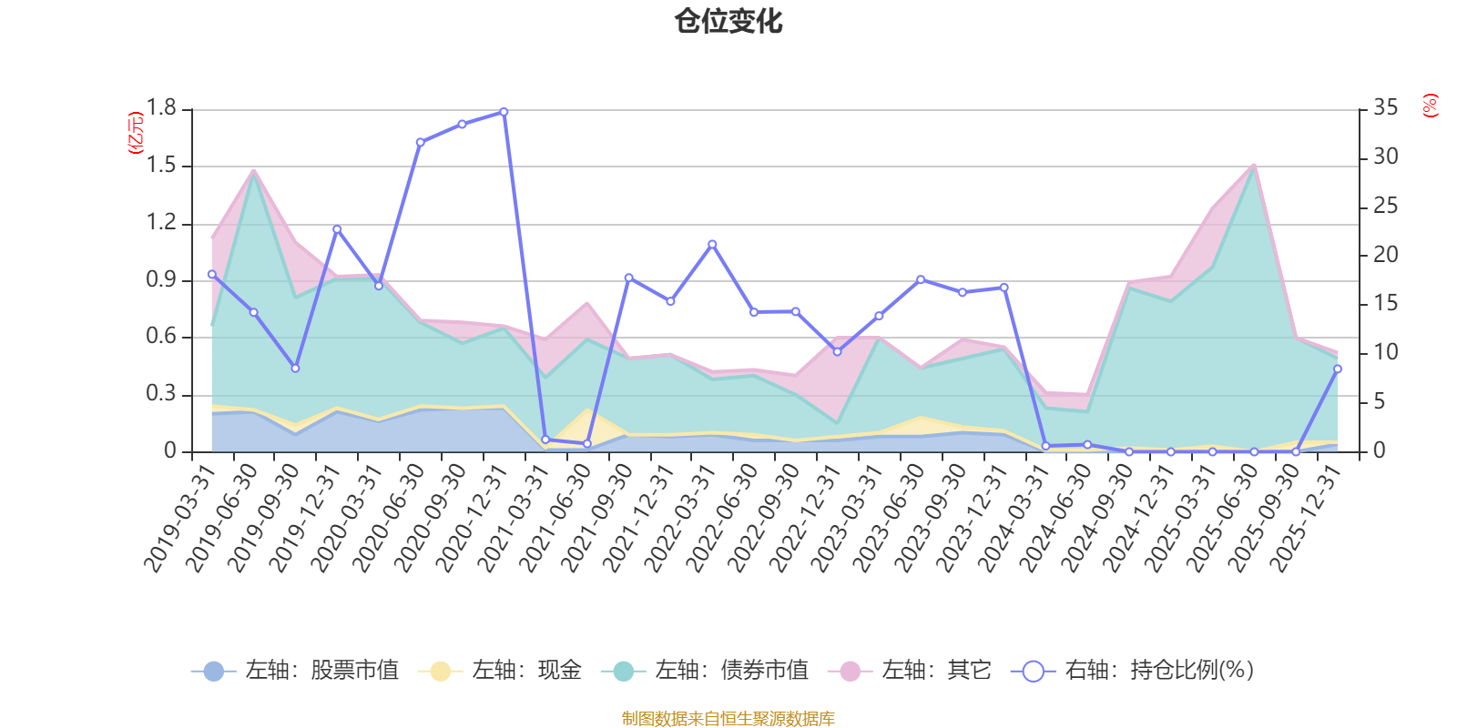 据定期报告数据统计,近三年平均股票仓位为6.2%,同类平均为19.11%。2020年末基金达到34.73%的最高仓位,2024年一季度末最低,为0.6%。