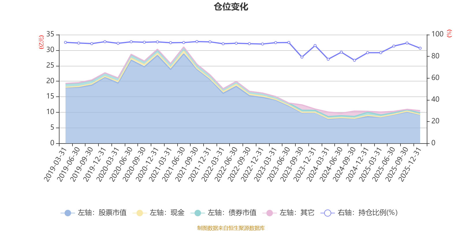 据定期报告数据统计,近三年平均股票仓位为85.72%,同类平均为87.64%。2021年三季度末基金达到93.62%的最高仓位,2024年三季度末最低,为76.44%。