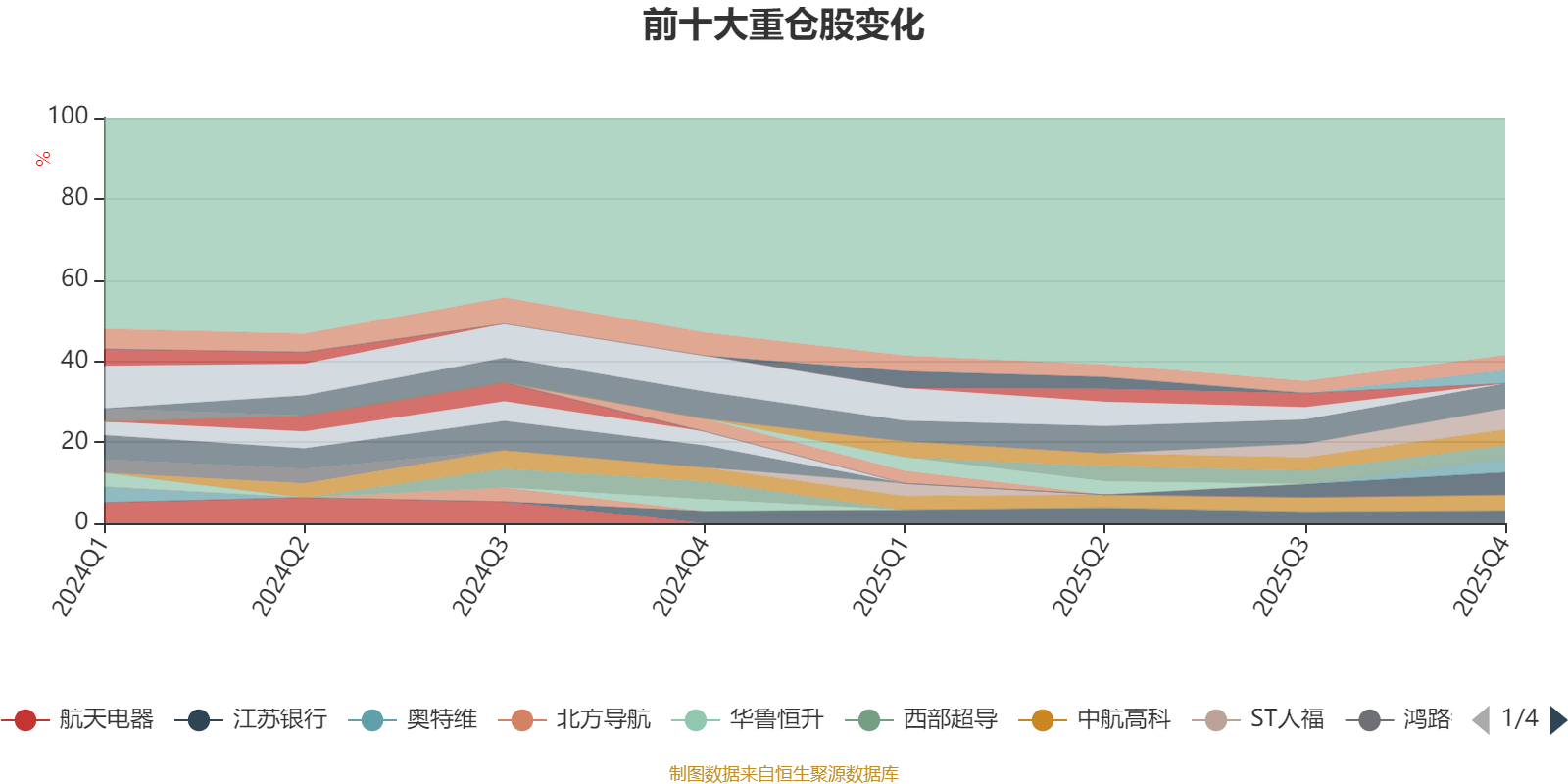 截至2025年四季度末,基金十大重仓股分别是晶品特装、山东黄金、山金国际、紫金矿业、中航高科、中航光电、电连技术、赤峰黄金、海兴电力、江苏银行。