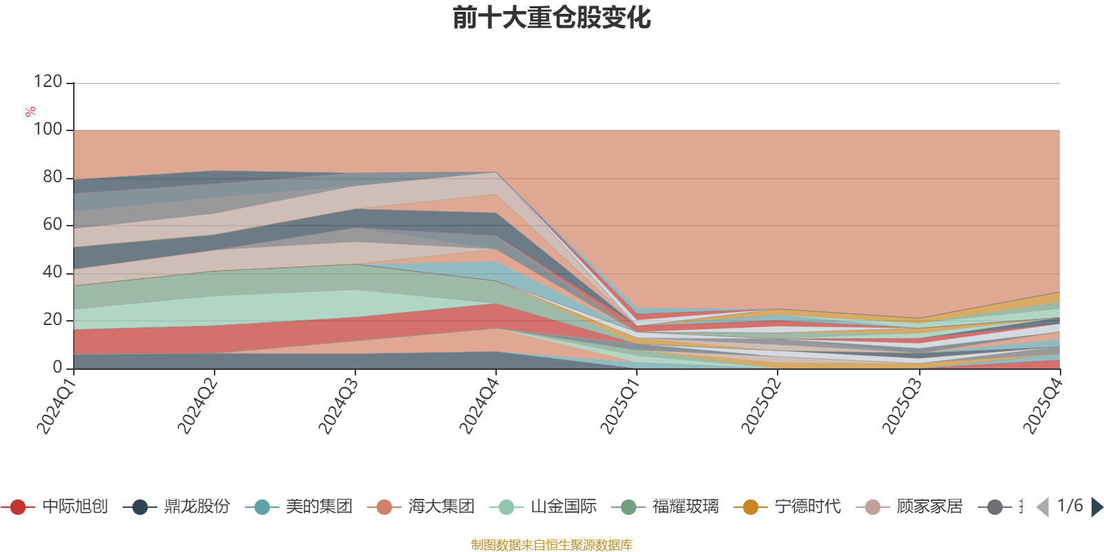 截至2025年四季度末,基金十大重仓股分别是中国平安、贵州茅台、中际旭创、紫金矿业、海康威视、紫江企业、招商银行、燕京啤酒、新易盛、美的集团。