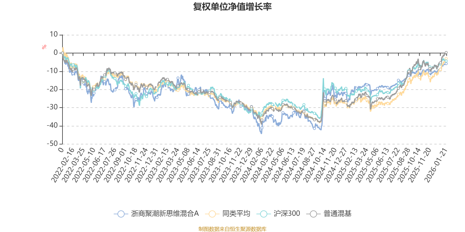 截至1月21日,浙商聚潮新思维混合A近三个月复权单位净值增长率为5.63%,位于同类可比基金83/134;近半年复权单位净值增长率为11.75%,位于同类可比基金98/134;近一年复权单位净值增长率为18.15%,位于同类可比基金91/131;近三年复权单位净值增长率为14.27%,位于同类可比基金70/124。