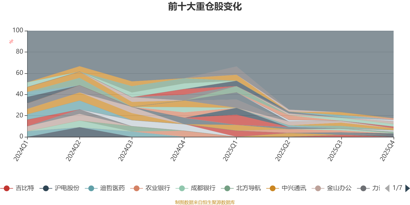 截至2025年四季度末,基金十大重仓股分别是中际旭创、鹏鼎控股、新易盛、沪电股份、宏盛股份、徐工机械、分众传媒、上海银行、平安银行、苏州银行。