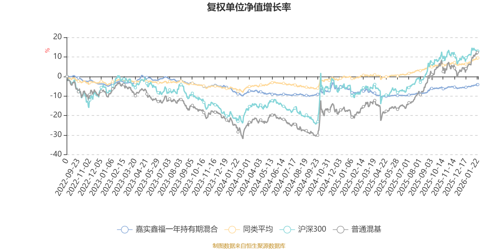 截至1月22日,嘉实鑫福一年持有期混合近三个月复权单位净值增长率为1.99%,位于同类可比基金338/629;近半年复权单位净值增长率为4.85%,位于同类可比基金270/629;近一年复权单位净值增长率为4.25%,位于同类可比基金522/626;近三年复权单位净值增长率为-1.41%,位于同类可比基金545/564。