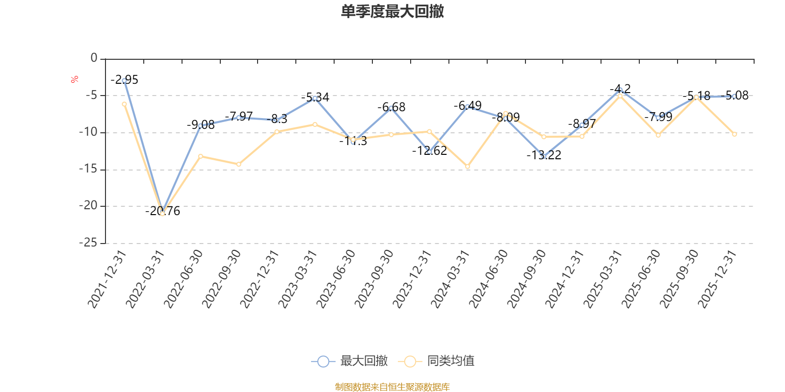截至1月22日,基金近三年最大回撤为22.3%,同类可比基金排名14/124。单季度最大回撤出现在2022年一季度,为20.76%。