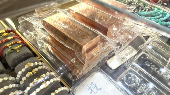 投资铜条到底火不火?据观察,市场上销售铜条的商户仍是少数,柜台上以黄金和白银为主。大部分前来采购的消费者也多在咨询和购买银条,记者在水贝探访的2个小时内并未见到有消费者询问和购买铜条。