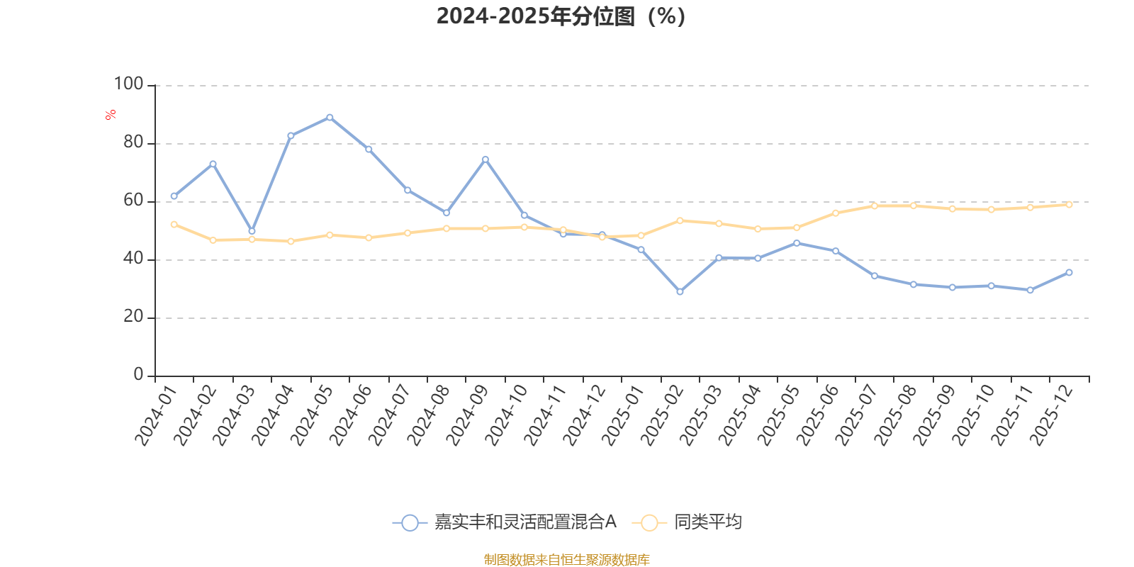 通过所选区间该基金净值增长率分位图,可以观察该基金与同类基金业绩比较情况。图为坐标原点到区间内某时点的净值增长率在同类基金中的分位数。