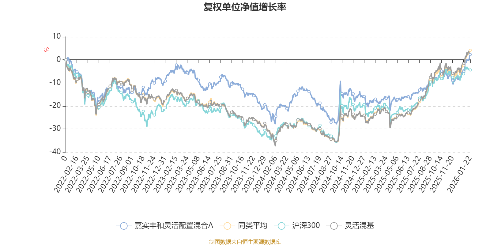 截至1月22日,嘉实丰和灵活配置混合A近三个月复权单位净值增长率为10.38%,位于同类可比基金550/1286;近半年复权单位净值增长率为17.68%,位于同类可比基金742/1286;近一年复权单位净值增长率为25.66%,位于同类可比基金802/1286;近三年复权单位净值增长率为7.12%,位于同类可比基金875/1286。